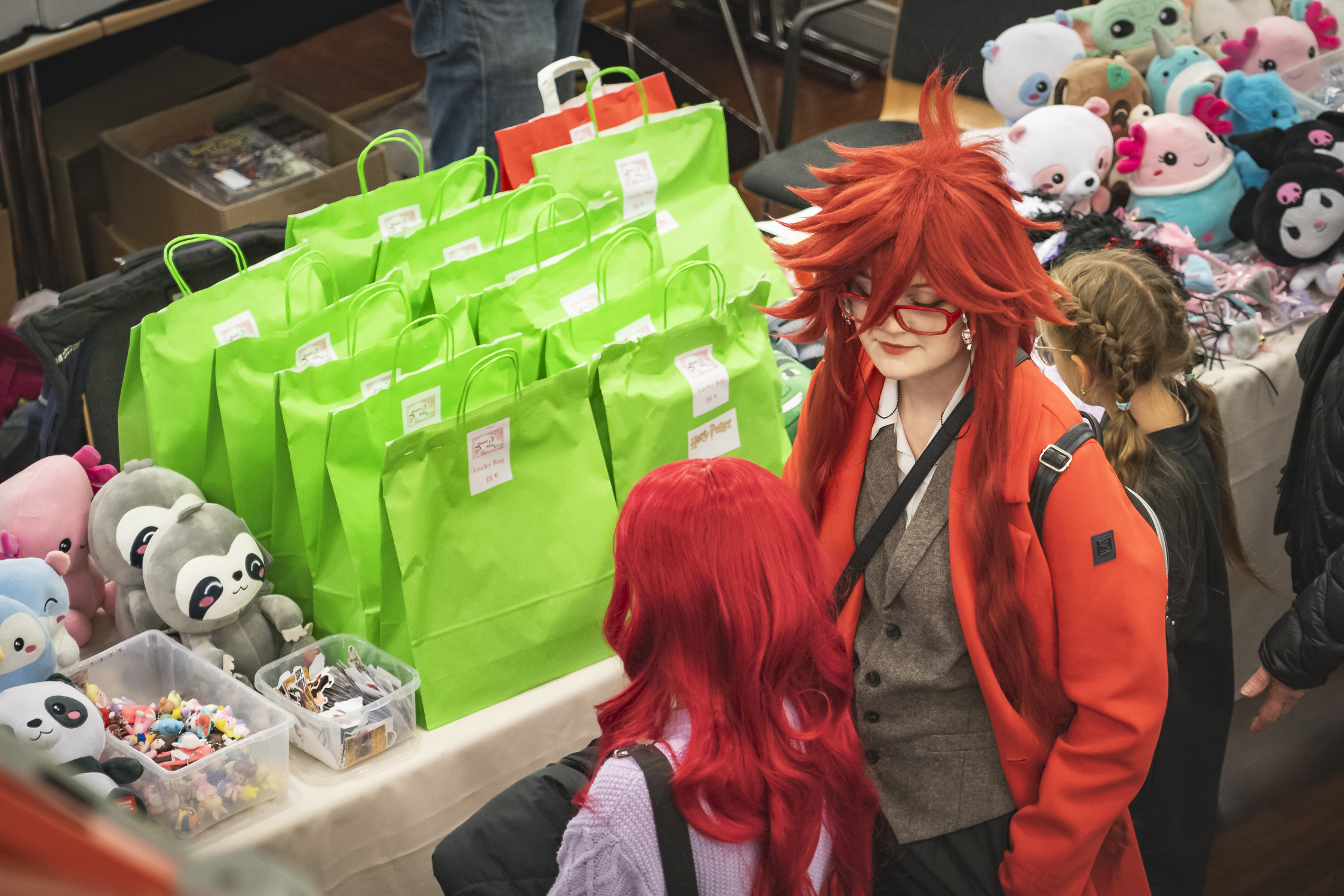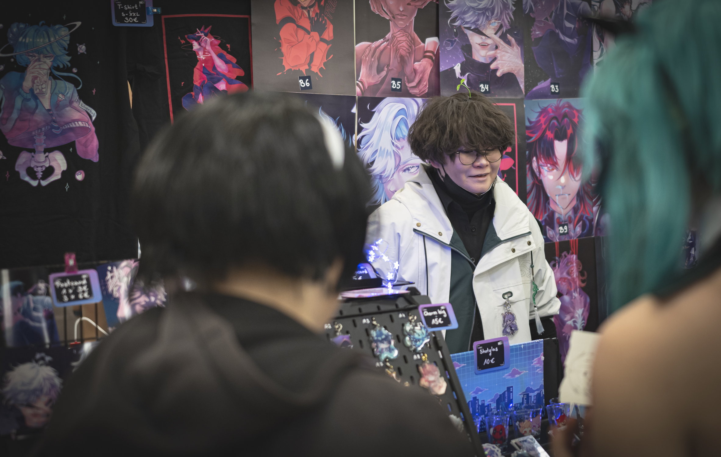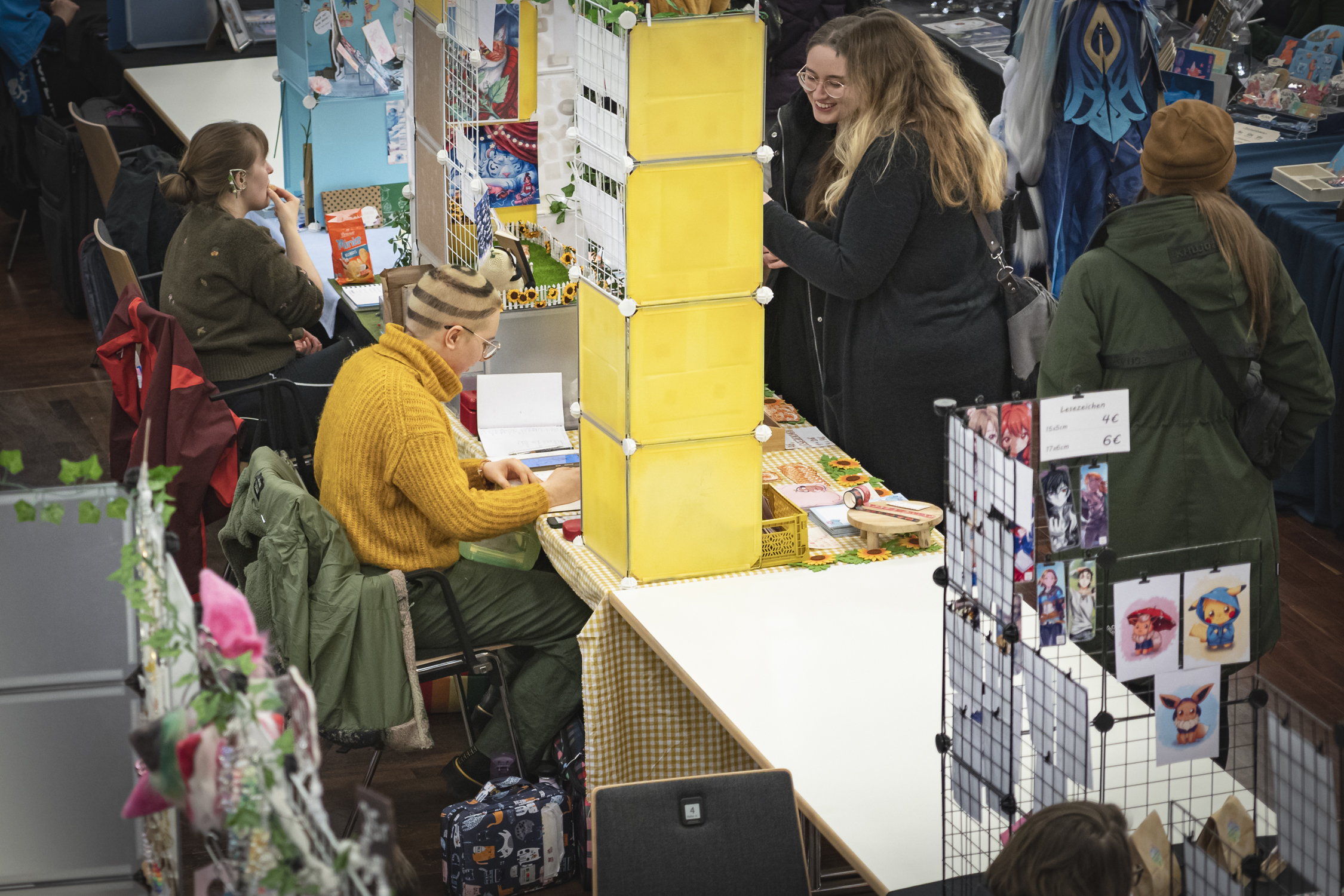 Die Haupthalle war in sechs Gänge unterteilt, die links und rechts von Ständen gesäumt waren. Hier gab es alles, was das Herz eines echten Fans begehrt: Von Manga-Büchern und Comics über Textilien bis zu ausgefallenen Lampen und Deko-Elementen war alles dabei. Besonders beeindruckend waren die Stände mit Kunstschaffenden, die hier ihre Werke präsentierten. Neben Originalzeichnungen konnte man auch selbst erstellte Unikate erwerben – perfekte Souvenirs auch über diesen Tag hinaus!