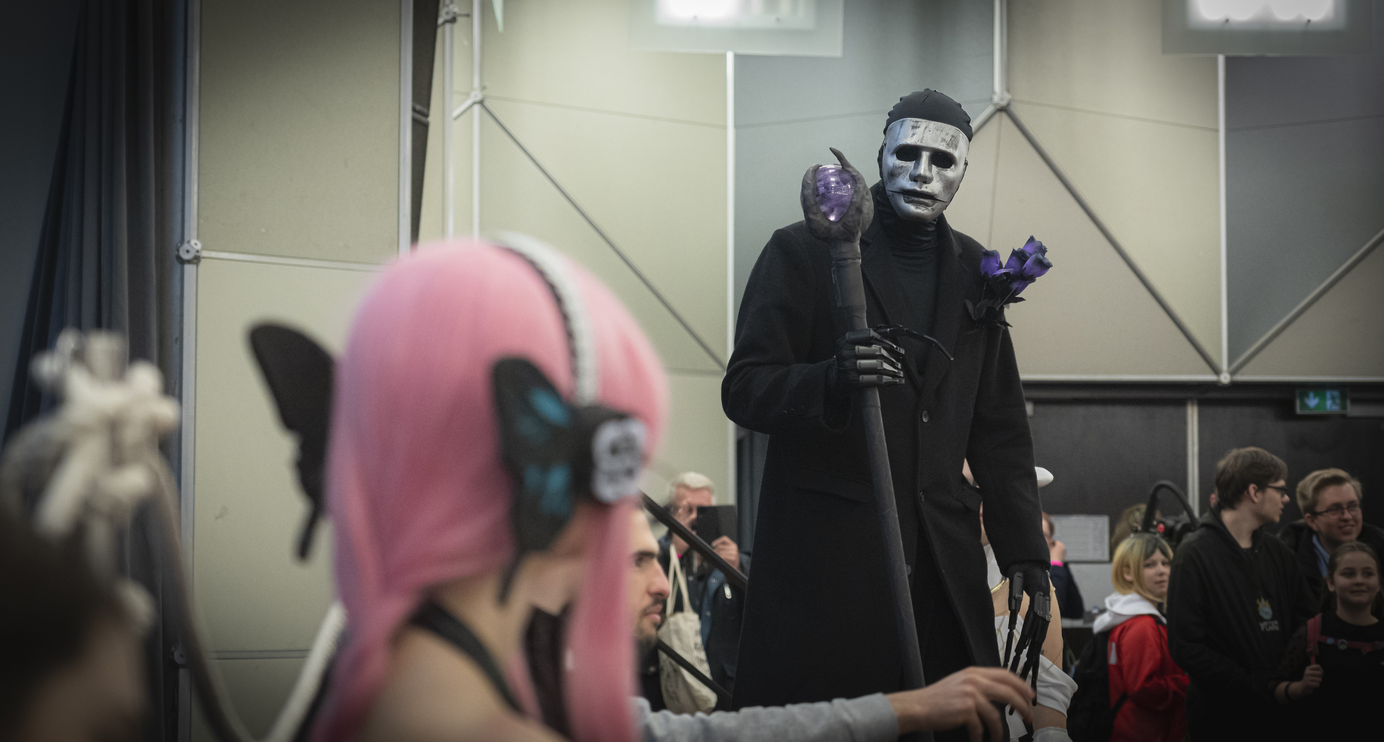 Was sofort ins Auge sprang, war die Fülle an Cosplayern. Fantasievolle, teils aufwendig gestaltete Kostüme bestimmten das Bild der Veranstaltung. Die Liebe zum Detail war beeindruckend, und man konnte sehen, wie viel Zeit und Herzblut die Teilnehmenden in ihre Outfits gesteckt hatten. Besonders schön war die Atmosphäre: Obwohl einige Kostüme martialisch und düster anmuteten, herrschte eine ausgelassene und fröhliche Stimmung. Es war ein familiäres Miteinander, das – so war mein Eindruck auch in diesem Jahr – die starke Gemeinschaft der Fans widerspiegelte.
